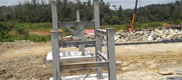 H型合金清扫器为头道清扫器,安装在带式输送机头部滚筒,利用橡胶弹性块的弹性性能,可自动调节清扫器刮刀与输送带之间的接触压力,橡胶弹性块的缓冲作用,保证了刮刀与